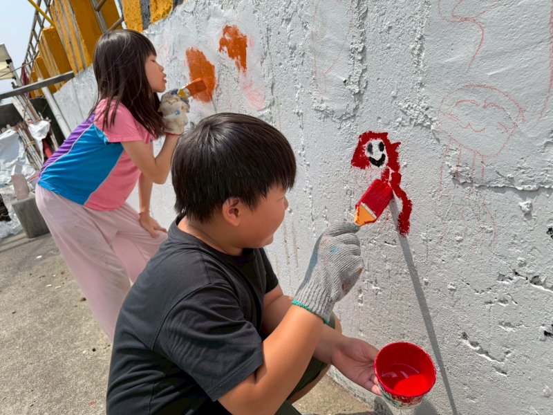 學生的創意同樣為牆面注入活力,王佐宇興奮表示,能在校外牆面作畫非常新鮮,透過海洋生物創作讓更多人看見蚵仔寮之美;林宥宇則結合世界地球日主題「Our Power, Our Planet」,將SDGs理念融入畫面,展現守護海洋環境的意識與行動。