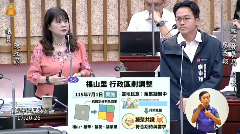 陳玫娟追問工程時程,直言地方已等待太久,既然爭議都已底定,就應盡快動工。廖泰翔回覆,業者預計下周提出新版投資計畫書送交經發局審查,後續將辦理相關執照申請作業,盼能在今年第三季至第四季初啟動施工。陳玫娟則當場要求市府加快腳步,讓地方期待已久的多功能活動中心早日成真。