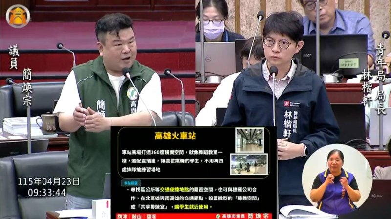 此外,簡煥宗也關注青年社團空間不足問題,指出中央公園據點對偏遠地區學生不便,建議比照捷運場域設置練習空間。林楷軒回應,已盤點捷運沿線場地,未來將整合資源,提升青年使用便利性。