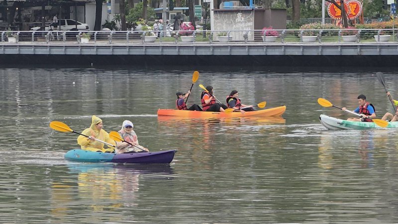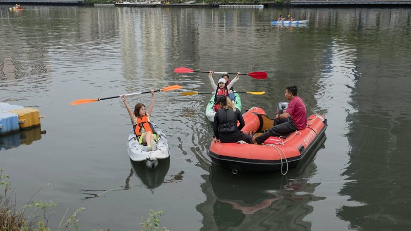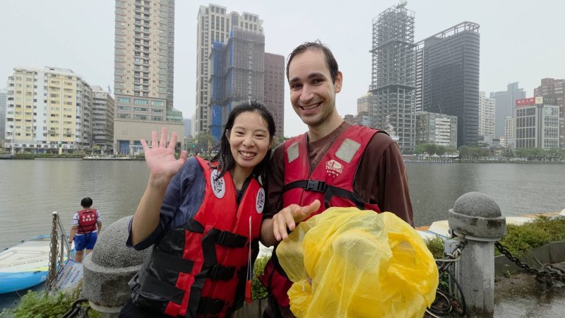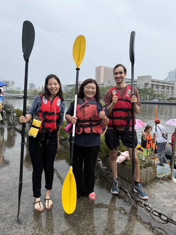 今天還有來自德國與日本的學生,他們都是第一次玩獨木舟,「因為下雨,多少受到一些影響,但整體而言,真的很好玩。」
