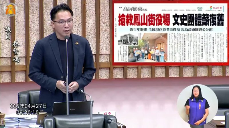 【漾新聞記者陳雯萍/高雄報導】高雄市議會教育部門質詢中,高雄市議員林智鴻關注鳳山曹公圖書分館耐震補強工程意外揭露的歷史遺構,指出施工過程中發現疑似近百年前「鳳山街驛」遺址,恐為全台現存最早街役場建築之一,呼籲市府應優先保存文化資產價值,並與文史團體建立共識,在安全與歷史之間取得平衡。文化局長王文翠回應,已啟動調查並調整工程方式,強調將兼顧結構安全與文化保存。