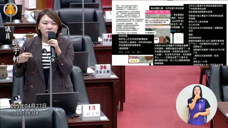 邱于軒強調,主辦協會過去曾有負面紀錄,去年在台北舉辦活動亦出現爭議,質疑運動發展局在核定補助前,是否已充分掌握主辦單位背景與執行能力。她表示,「市府既然掛名共同主辦,就應該承擔相對責任」,不能在問題爆發後僅由協會自行處理。