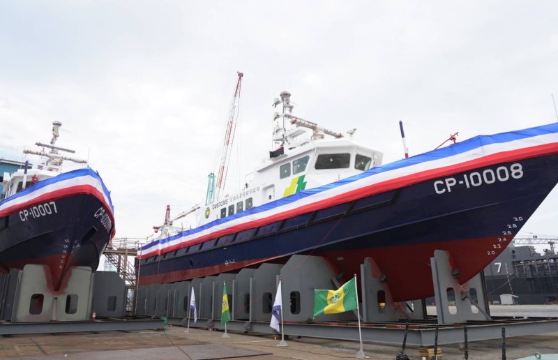 台船公司表示,此次承造之兩艘100噸級巡緝艇,為財政部關務署推動「海關巡緝艇汰舊換新計畫第二期計畫」的重要成果。該案於113年6月11日簽約啟動,履約期限至116年8月28日,今日完成命名暨下水,預計可如期交付,投入海上查緝任務。