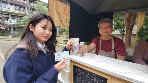 2年15班蕭涵予闖關通過,也利用兌換卷買了一杯寒天冷飲,她說,很感謝學校辦這個活動,讓他們可以親身體驗,有更多學習的機會,在迎接寒假之際,也可以提前放鬆一下!她也認為今天的闖關並不難,「而且關主待我們都很友善!」