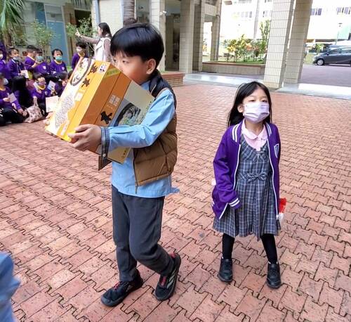而接受贈品的家長委員志工就是自己的媽媽,鍾智悅的媽媽王怡婷說,為了今天的活動,特別帶他去採買,而他也說,要買什麼要自己選,採買的過程中,感覺到他很享受可以幫助人的過程。