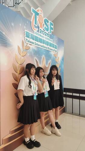 圖/雄女學生黃畇蓁、卓伶恩、余亦甯榮獲醫學與健康科學三等獎,以及體外生物協會特別獎。