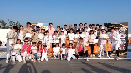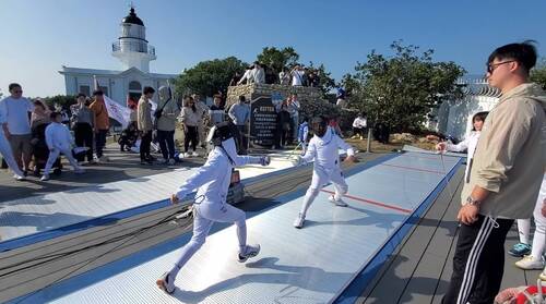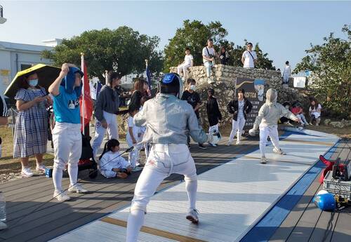 圖/首屆劍橋盃全國擊劍賽旗津燈塔登場,親子同樂揮劍競技。(記者陳雯萍攝)
