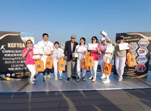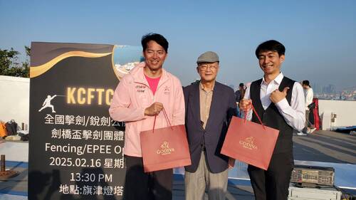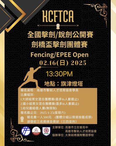 2025KCFTCA全國擊劍賽,2/7日舉行港台聯合賽,2/8日進行全國擊劍公開賽,2/16日則在旗津燈塔舉行首屆的劍橋盃團體賽,包括大榮中學董事長李振登、國小部主任鄭麗滿、大榮中學家長會總會長林至佳、大榮劍橋國際雙語學校家長會長陳惠嫥、左營高中校長,也是高雄市擊劍人才培育協會理事長林百鴻、教練林生祥、協會總幹事唐川、大榮中學活動委員會秘書長李俊成都出席,並上台頒獎,表揚選手們的優秀表現。