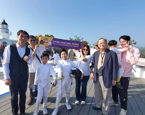 圖/高雄市擊劍人才培育協會理事長,左營高中校長林百鴻與左中的擊劍好手合影。(記者陳雯萍攝)