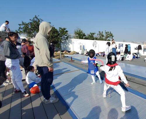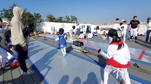 【漾新聞記者陳雯萍/高雄報導】讓擊劍運動向下紮根,同時也訓練學童專注力、穩定性與膽量勇氣!國小學童參與擊劍運動在高雄市已逐漸成為風氣,不僅有越來越多的學童參與,成為生活日常,甚至連父母親也加入,父子檔、母子檔,親子一起運動,親子同樂,也一起健康!
