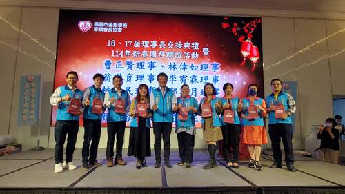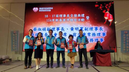 包括高雄市校長協會輔導理事長高瑞賢、高雄市教師職業公會副理事長董書攸、協會總顧問、國際獅子會300E-3區前總監蔡福來,以及遠道而來的澎湖縣各級學校家長會長協會理事長吳國寶等人,也上台致詞祝賀,這歷史性的一刻。