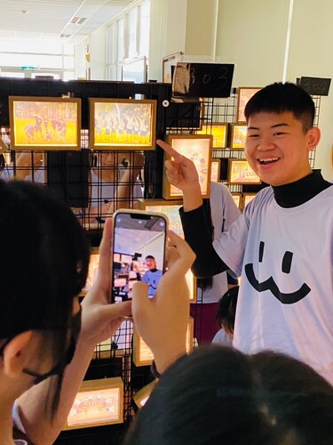 展覽更特別安排畢業生擔任導覽解說員,讓各班學生在表演藝術課時前來參觀,並搭配學習單書寫活動。透過這樣的安排,畢業生不僅強化表達能力,也提升團隊合作與自信,而國一、國二的學弟妹則能從學長姊的作品中汲取靈感,期待未來有機會參與創作。